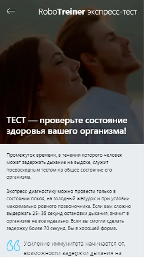 Your health and ability to withstand external influences depend on the presence of immunity. Breathing is the way to activate immunity. You can increase your lung capacity, breath holding time and breathing depth. Holding your breath for 5 minutes is not the limit with our workout?