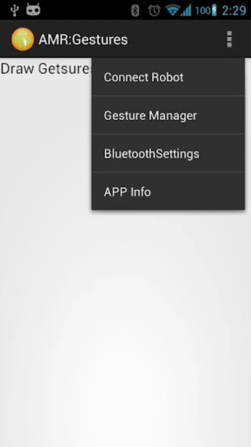 Draw a gesture on the screen and the name will be sent to your bluetooth module on the arduino or the robot