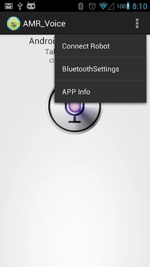 Uses android mobiles internal voice recognition to pass voice commands to your robot