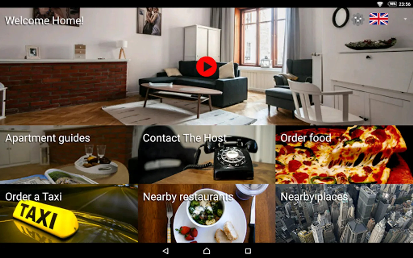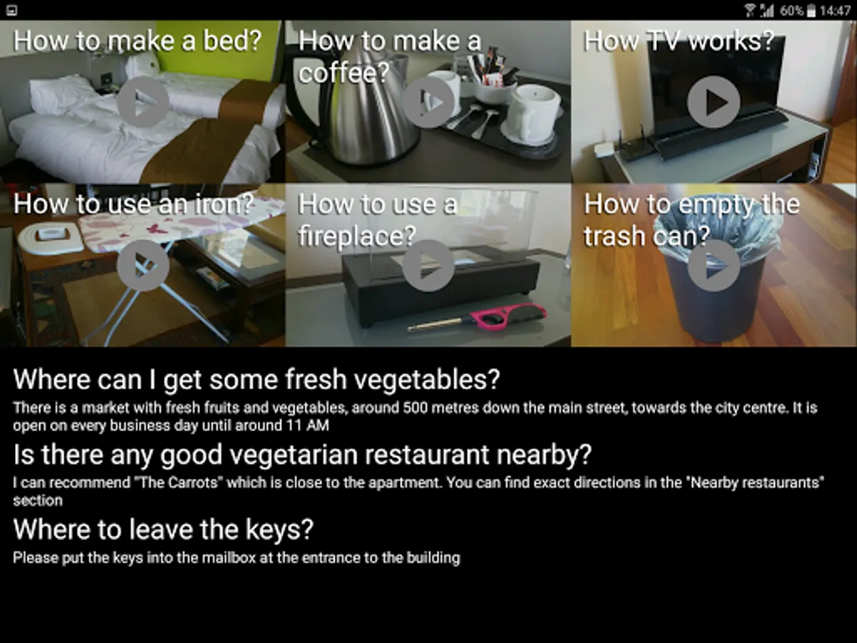 It is easy to configure and intuitive to use, even if you and your guests are not technology nerds! There is little text in the application, instead, there are large buttons with self-explanatory images, most of the content are videos, pictures, maps and contact information so that it is easy to use also for users who don't know the language.