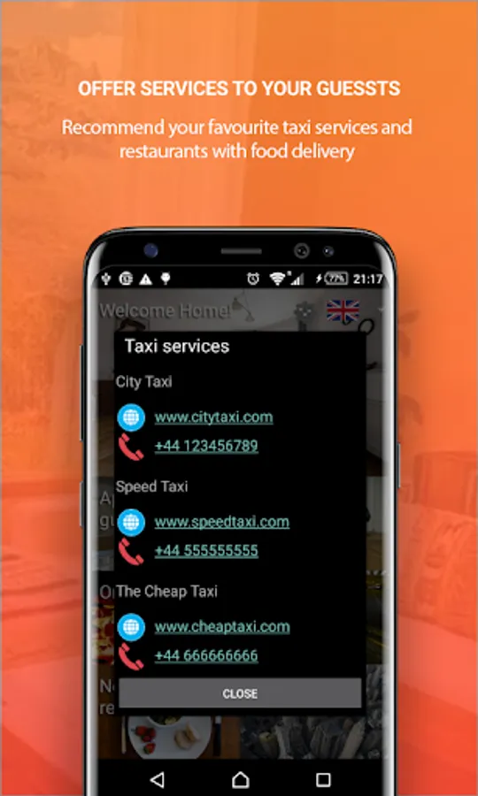 🏠 recommend your favorite taxi services and restaurants which offer food delivery