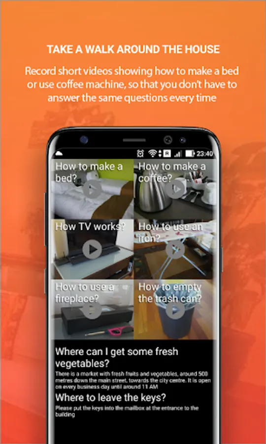 🏠 record short videos explaining basic tasks like how to make a bed or use coffee machine, or write a message explaining how to check out