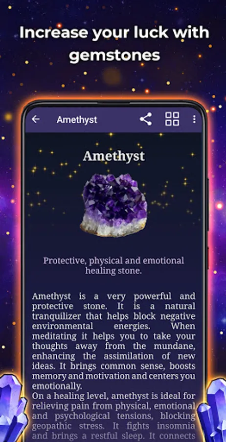 In this app, we will help you find the most suitable stones for you, your loved ones, home, work space, etc.
