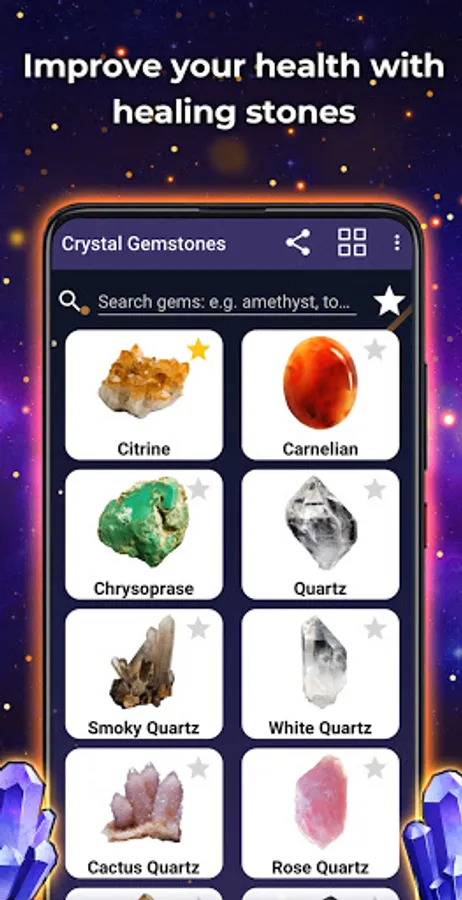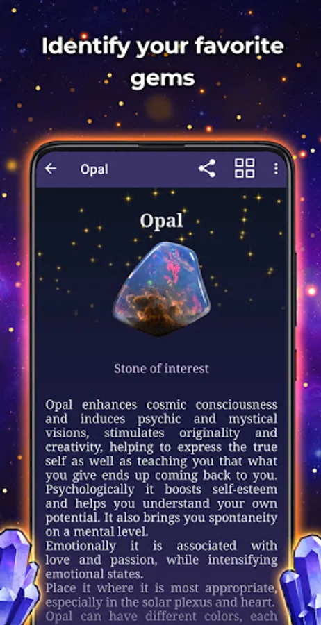 Are you looking for an application that allows you to identify stones and their attributions quickly? Are you also looking for an easy to use and fast guide to gems and crystals? Then you are in the right place!