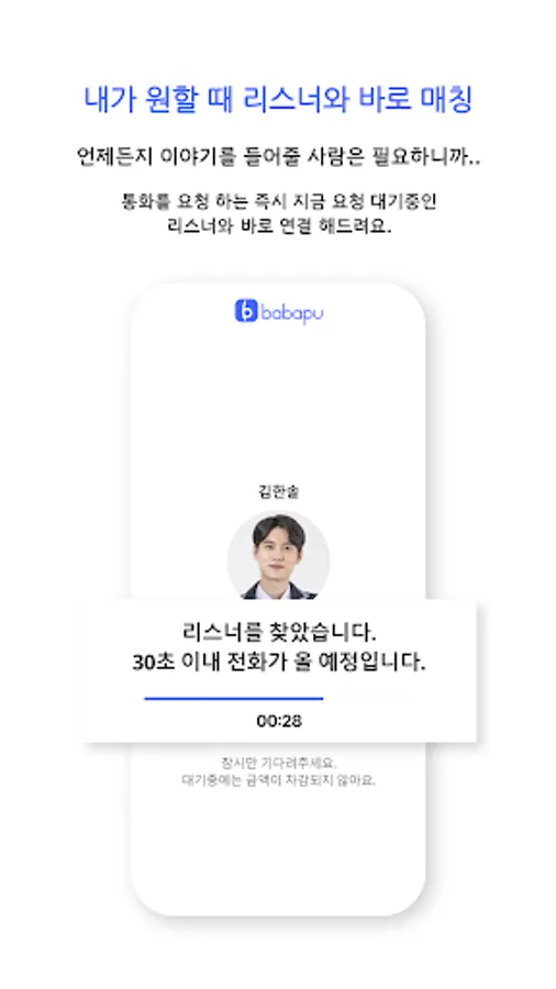 Babafu can receive empathy and comfort through an anonymous call with a real-time active listener (advisor) and solve it right away.