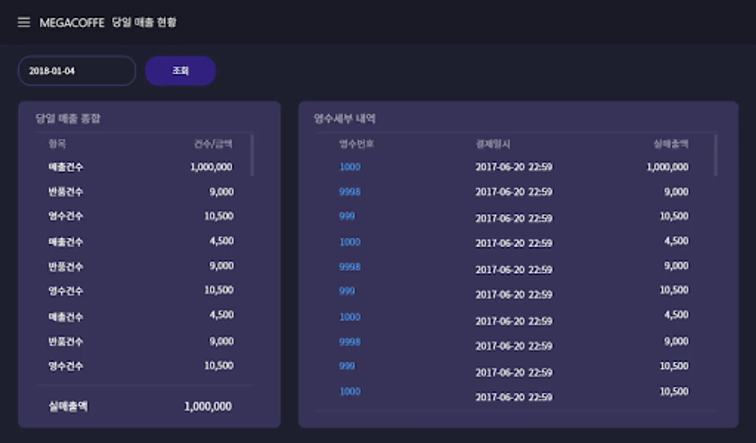 2) Details Views: Receipt Number / purchaser / payment when / room revenue