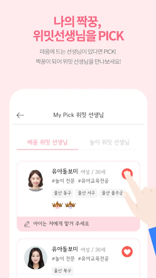 We-meet is a teacher matching app service started with the desire to more meaningfully fill the gaps of parents caused by precious children.