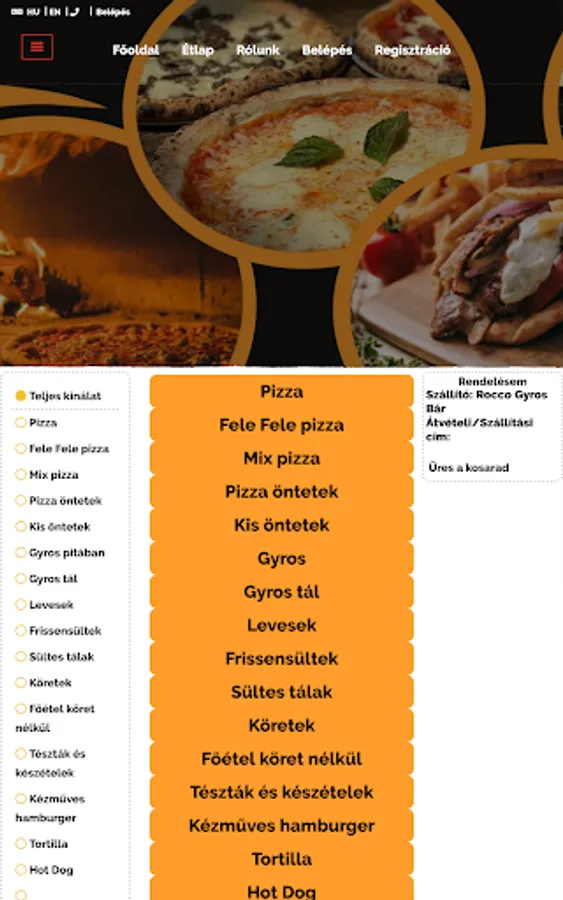 Online order for home delivery from Rocco Gyrosbár and Fast Food.