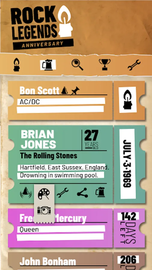 This app has more than 2700 Rock Legends to honor! Check the death anniversary countdown for all rock legends!