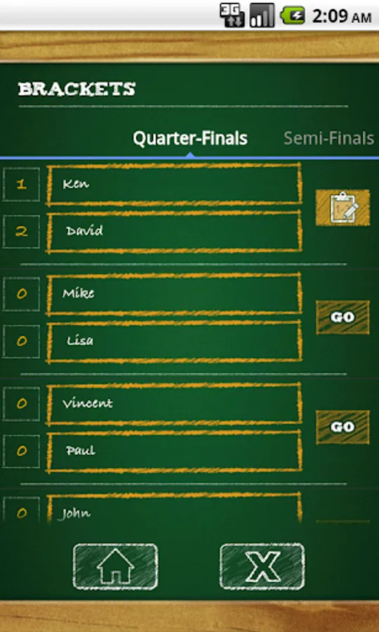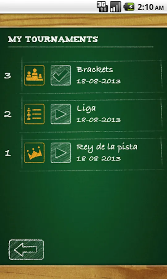 Tired of write down your matches with friends on pizza box? The Tournaments Manager can manage any kind of tournament: King of the hill, League and Brackets. Save your historical results and statistics of your games. Post on facebook the tournament winner. Up to 32 players per tournament. Ideal for tournaments FIFA and PES. Enjoy it! It's free! The best Tournament Maker and Bracket Builder.