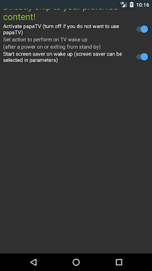 You can choose what application will start when your TV is powered on, wakes up from sleep or exiting from screen saver.