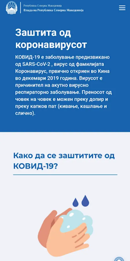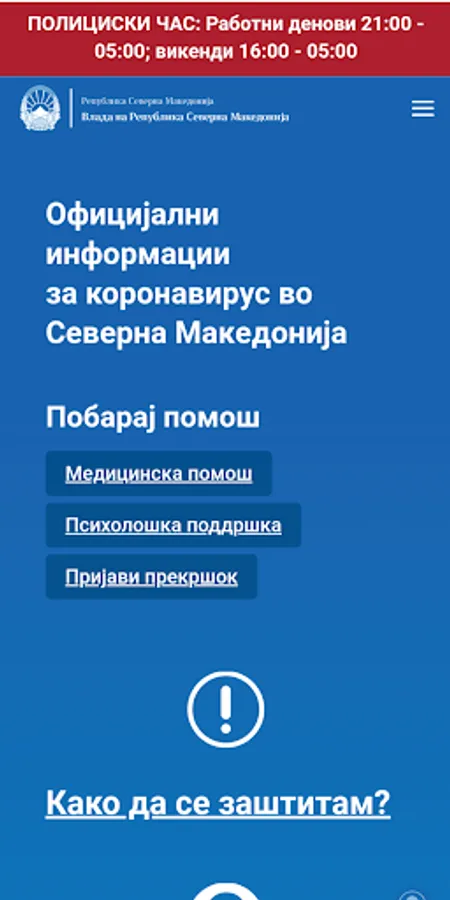 The application "Coronavirus MK" is intended for all citizens of the Republic of Northern Macedonia in order to be fully and timely informed about the measures and recommendations of the Government of the Republic of Northern Macedonia and the ministries.