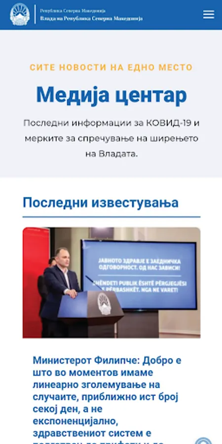 The application is made for the needs of the Public Relations Department of the Government of the Republic of Northern Macedonia and is an official application of the Government.