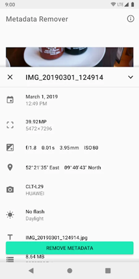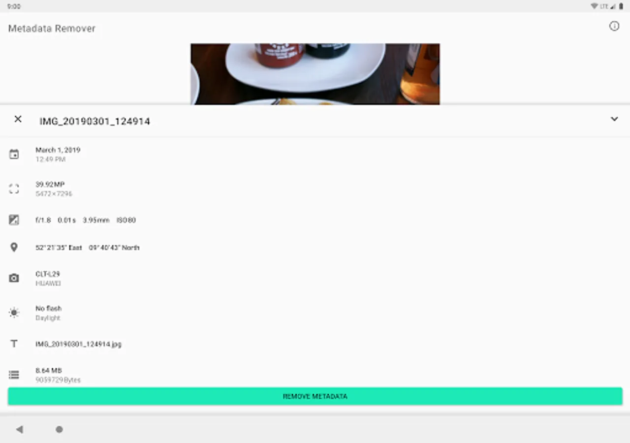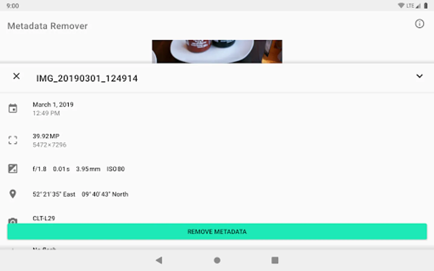 With our app, you can easily view all that data, remove it entirely, and then share the anonymized photo directly!