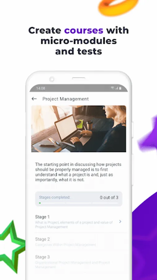 • Implement microlearning strategy: short modules with videos, presentations, and tests combined into courses.