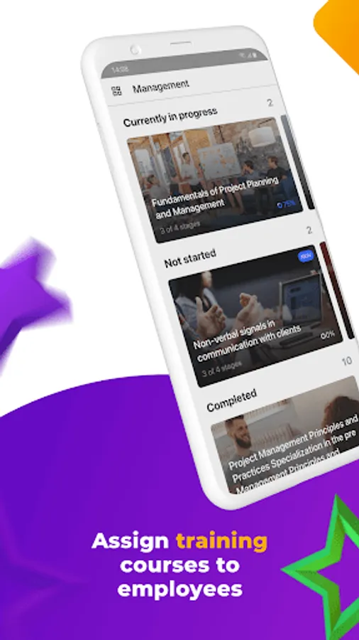 • Push-notifications to remind employees that they need to attend a training session, complete a course, or take a test.