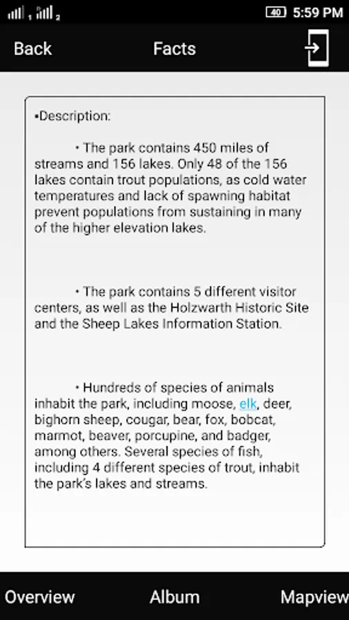 The Rocky Mountain national park app helps to plan your visit easy. This app has Rocky Mountain national park maps and more details like places to see and Rocky Mountain national park lodging and hotels near Rocky Mountain national park. This app allows to plan multiple days and weeks visiting with Rocky Mountain national park camping details.