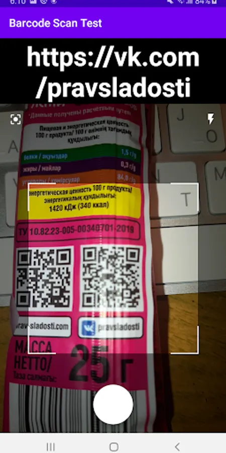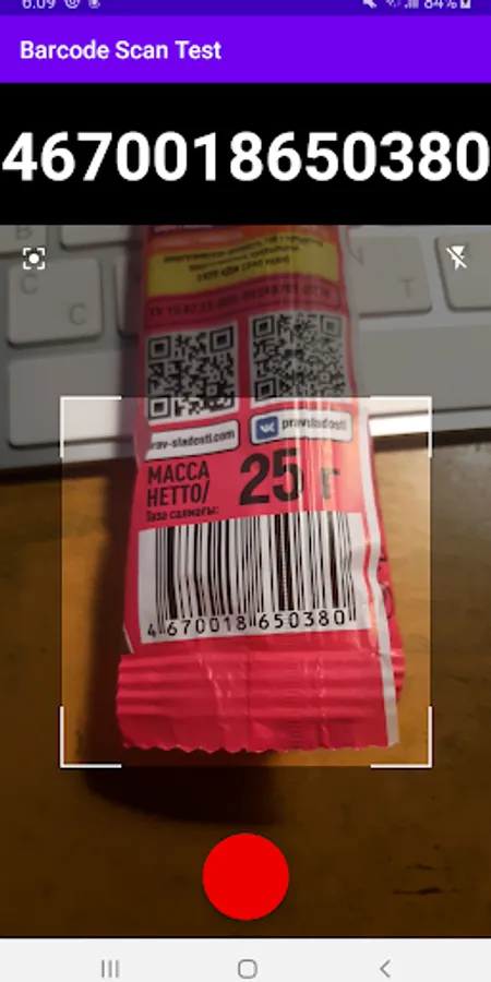 This application is written to test the ability of the phone’s camera to scan a barcode.