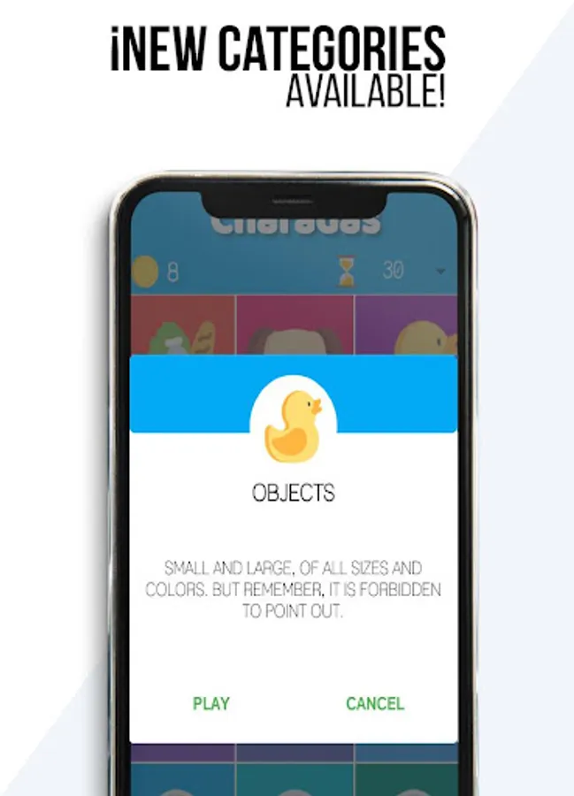 Game instructions: Select your category, start the game and place the device on the forehead; The other players will act, give you clues or imitate. If you guessed the phrase, tilt the device to the right or if you want to pass, tilt it to the left.