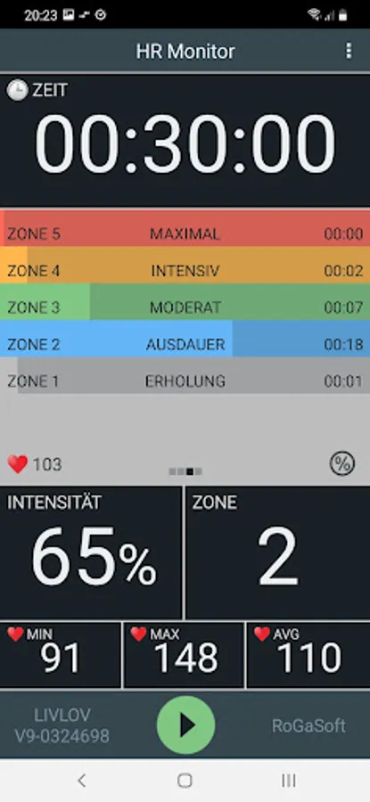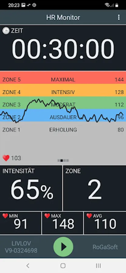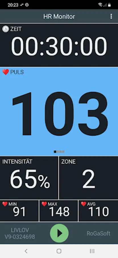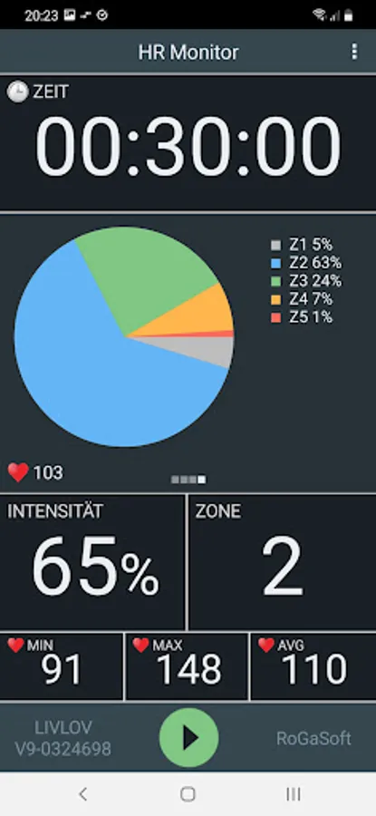 HR Monitor is primarily used for heart rate monitoring using a sensor (Wahoo, Polar, LILOV) and offers various displays of the heart rate recording.