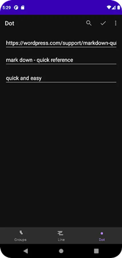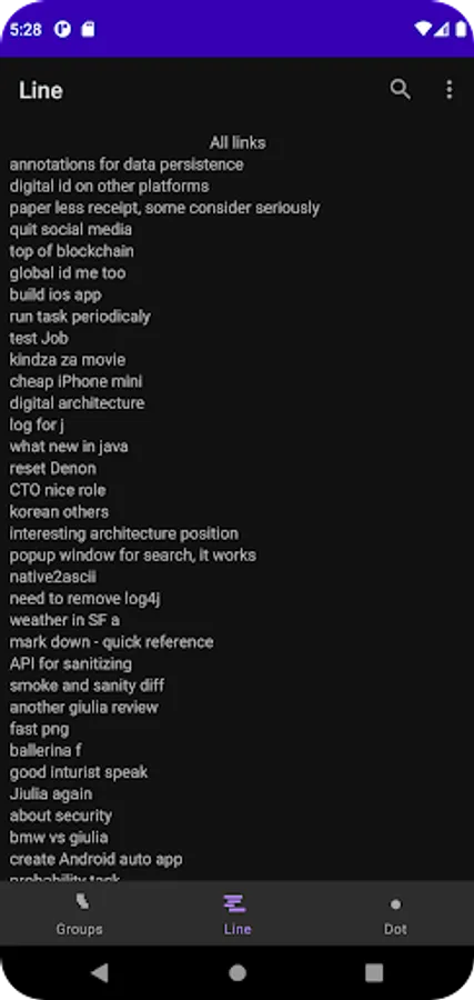 A sharing links is a very common task nowadays. Some Eco systems do it automatically between all devices, but some are less proactive. A purpose of the application to demonstrate one of approaches to share links between devices. It doesn’t limit to a particular eco system. For example you can share links between iPhone, Mac computer, Windows, Linux, Android and so on. Generally, a link added on some device get shared between all devices automatically when the devices are on a network. The application source code, as a sharing server source code are available on the web. Generally sharing is possible not only inside some network, but anywhere. Please notice that this approach considers using a sharing server, so it isn’t a peer to peer approach suggested by web3. The application uses an experimental UI approach. It has 3 tabs, one is for defining groups of links. Another one is for a showing content of a group with a possibility to follow a link. And finally a tab is for a defining and editing a link. A left swipe is used for deletion an item, and a right one for selecting an item. All shared links fall in a first group. So, when links get shared, there is no advantage to use several groups. A deletion of a link on a device doesn’t remove it from a server. If a link needs to be completely deleted, then an approach of redefining it is a right.