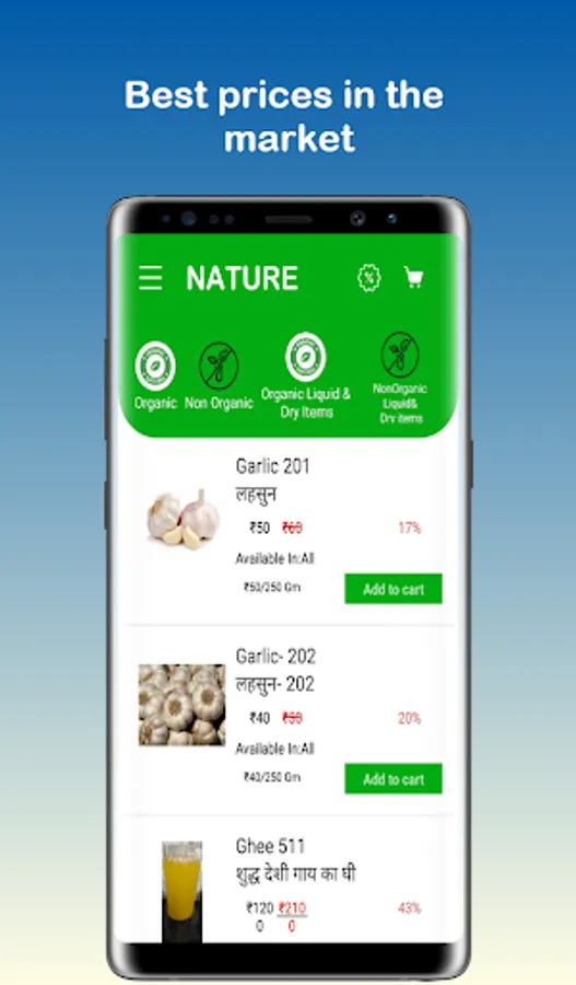 The Nature app is the super easiest way to buy grocery online with great offers and deals . You can compare price Online grocery shopping and can get delivered on your doorstep. Compare the market price with our best prices. Cash on delivery and online payments accepted.