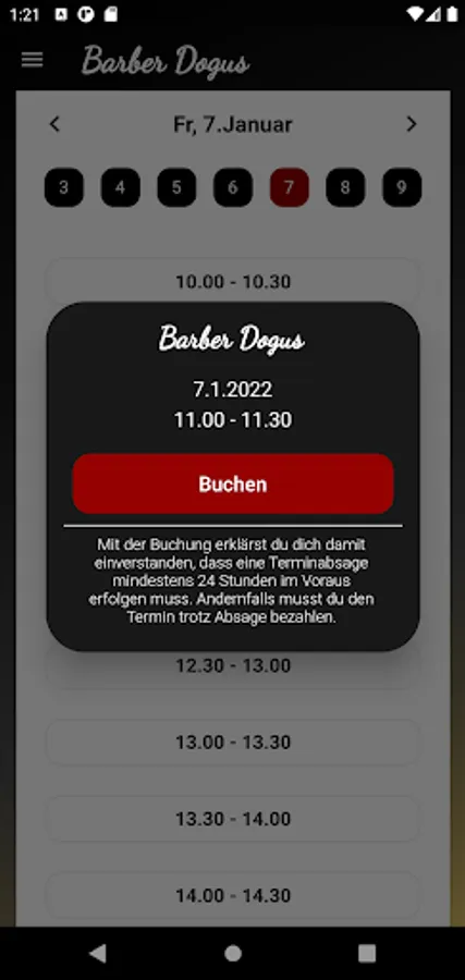 "Barber Dogus" - The smart choice for your barber appointment. Experience hassle-free booking, keep track of your upcoming appointments and stay in touch with your favorite barbershop. Discover an uncomplicated appointment organization and first-class care with every visit. Welcome to the world of Barber Dogus, where your style takes center stage.