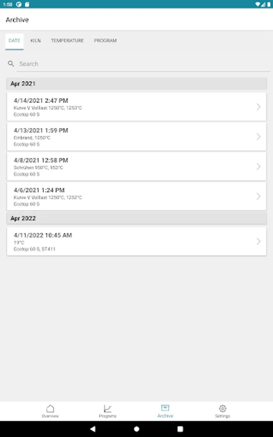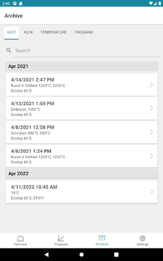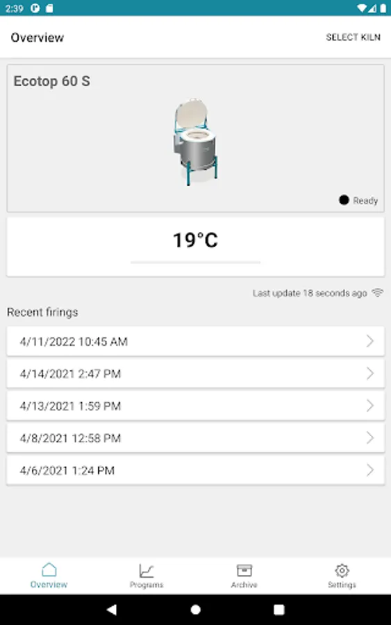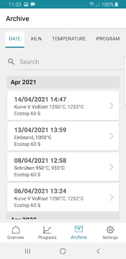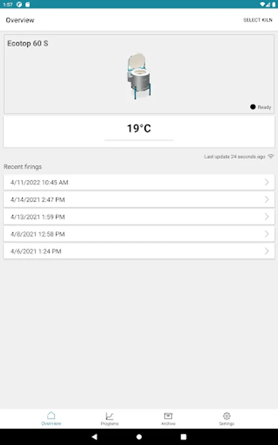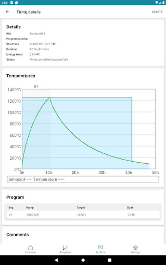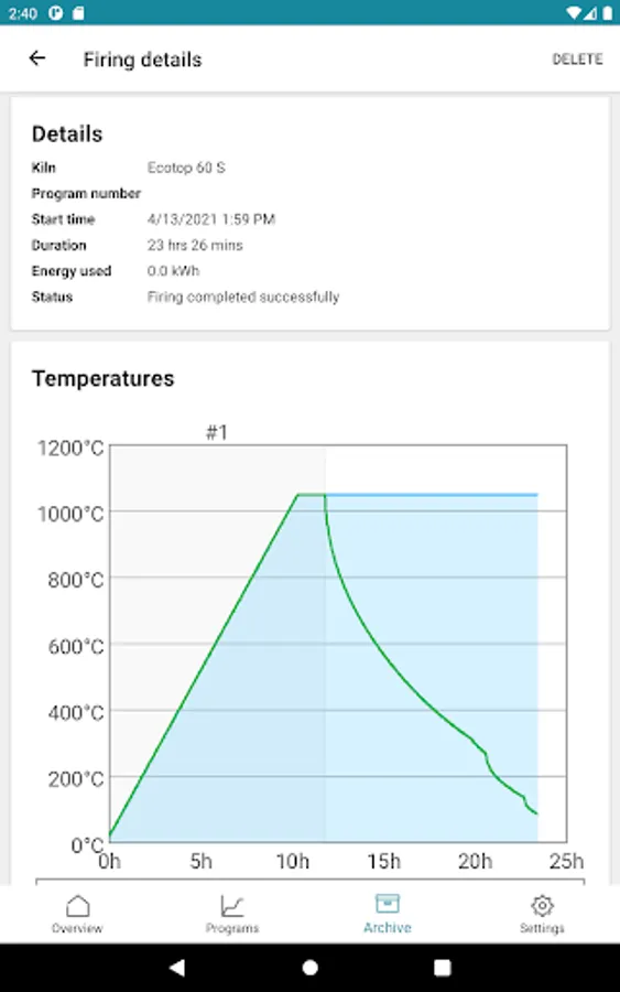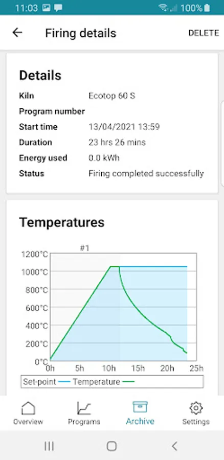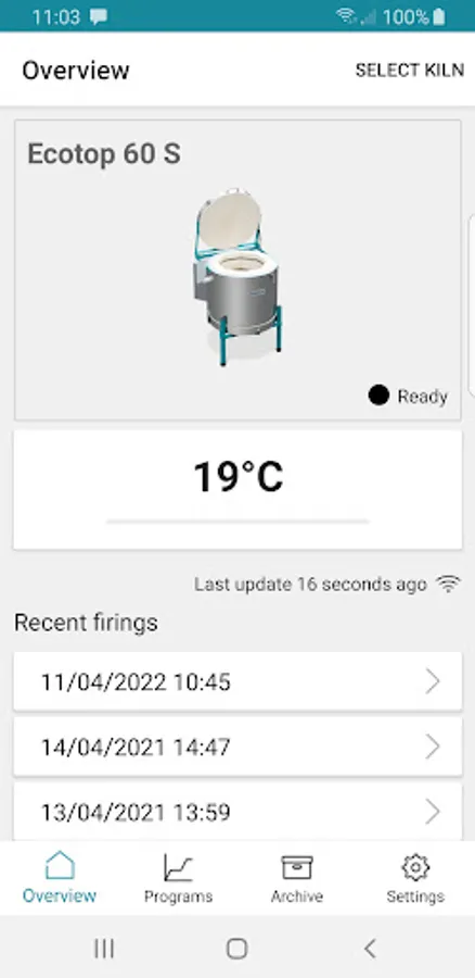 Each firing is automatically stored in the myKiln app and can be accompanied by pictures of your results or comments. This way you can keep track of your past firing curves.