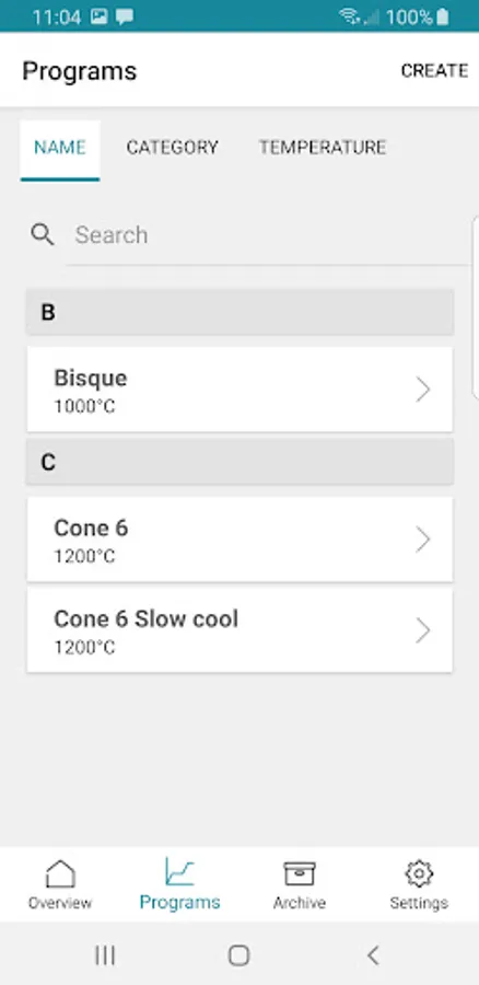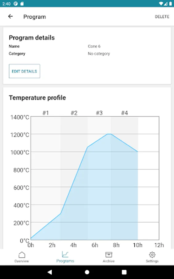 In the ROHDE myKiln app, you can create as many programmes as you like conveniently on your smartphone, check the programme in a schematic firing curve and save as many programmes as you like in your account. Each programme can be transferred to the controller with one click and then be started at the controller. Managing your firing programmes has never been so convenient!