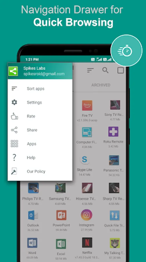 ✓ Share Your Apps (APK/LINK) with friends via email, Bluetooth etc.