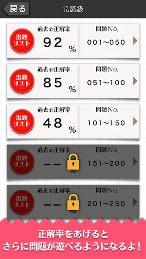 10問、20問、25問、30問、40問、50問と出題数を選んで挑戦することが可能です。