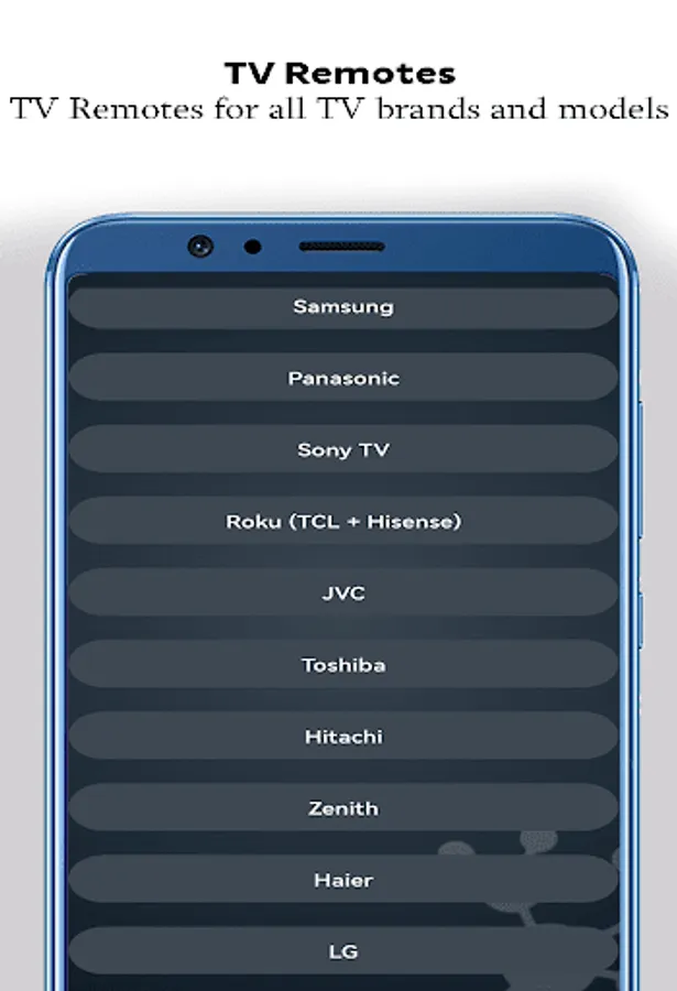 You will find what you are looking for from the samsung tv remote, roku tv remote ,sony tv remote , lg tv remote and remote for Smart TVs the app is digital tv remote control for all tv .