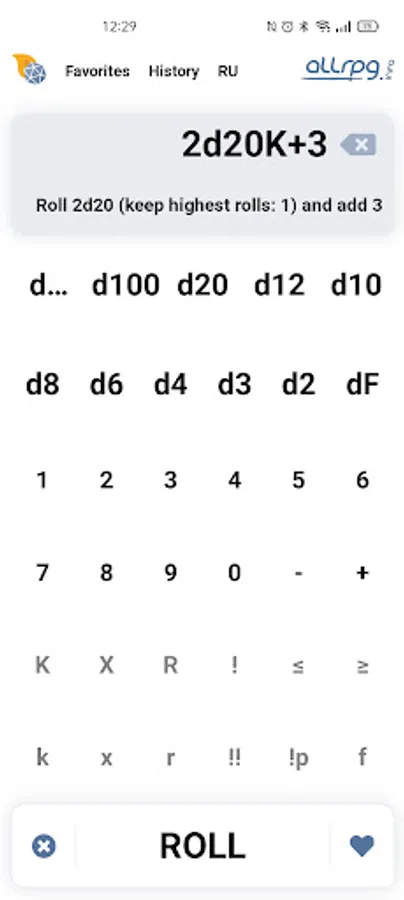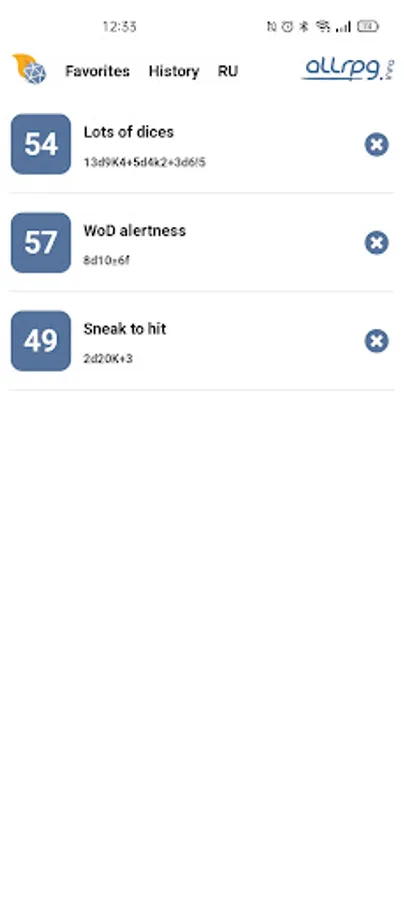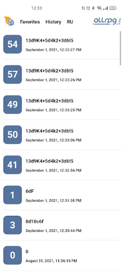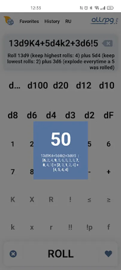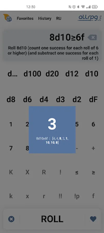 Includes every popular roll mechanics: modifiers, successes, advantages, rerolls and explodes. Comes packed with Fate and free dices. Find every roll in History and make your most used rolls a part of Favorites.