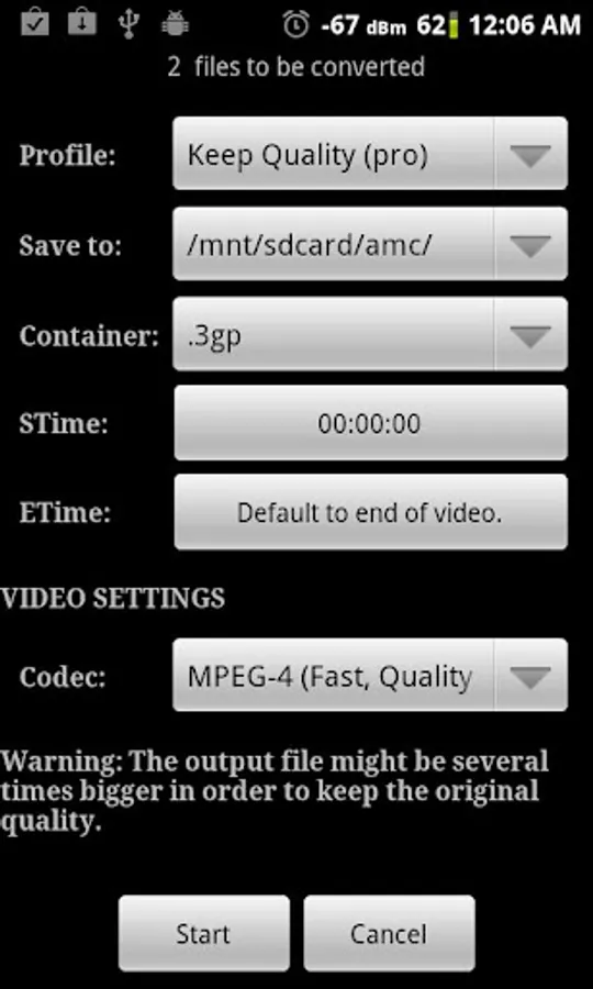 ***If Video Converter Android always fails to convert videos, please press menu=>help=>feedback=>conversion to send out a detailed log. We’ve been making the app work on more and more devices.***