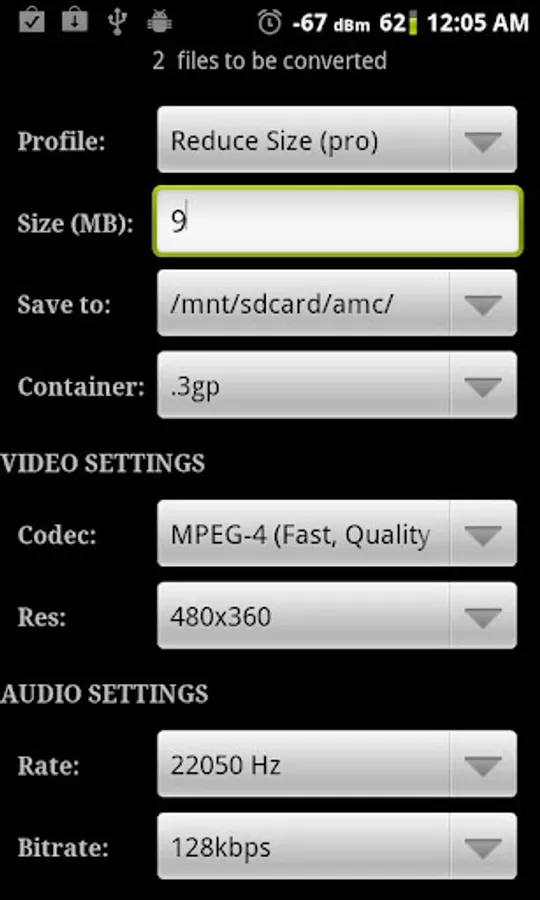 -reduce video file size to send out through SMS etc. (Reduce size profile)