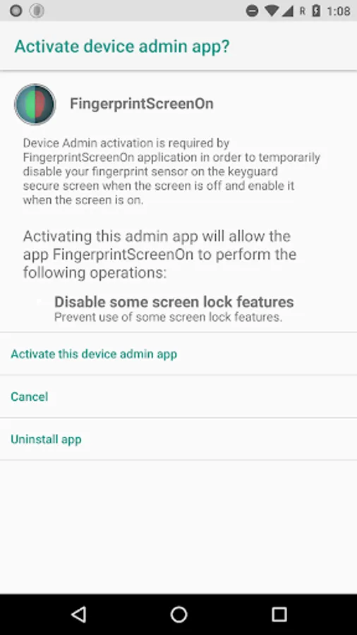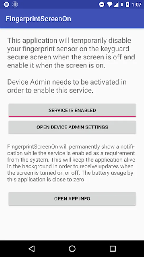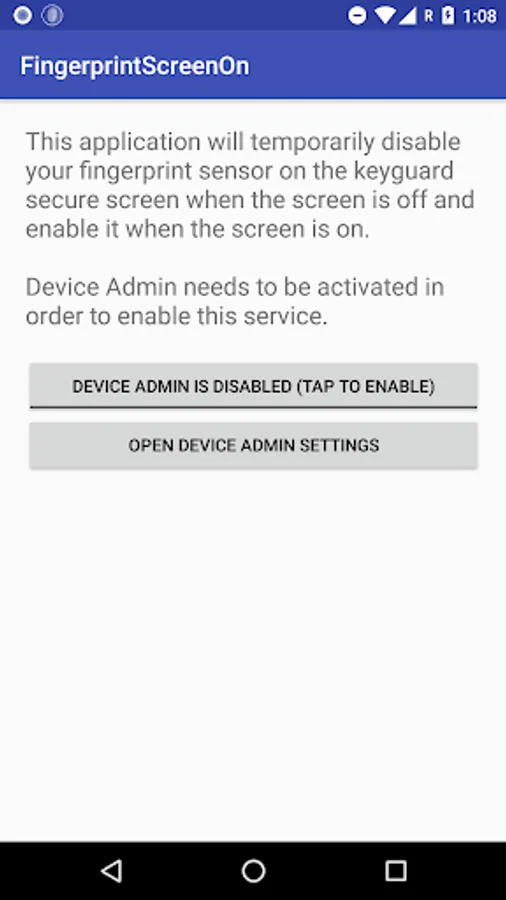 The application will temporarily disable your fingerprint sensor on the keyguard secure screen when the screen is off and enable it when the screen is on.
