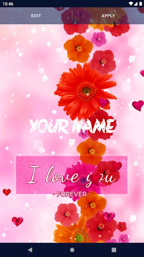 Love You Live Wallpaper ❤️ Couple Hearts Themes has multiple moving wallpapers with romantic and lovely couple images, pink flowers backgrounds, bright diamond HD wallpaper, multiple customize options like background changer, frames, animated red hearts, magic touch, analog clock, emoji, your name and more, that work on the lock screen and they are all FREE!