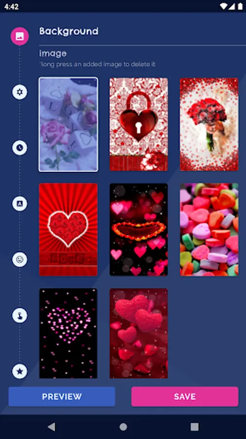Love Live Wallpapers ❤️ 3D Hearts 4K Wallpapers has multiple moving wallpapers with sweet candy and romantic images, true love backgrounds, red roses HD wallpaper, multiple customize options like background changer, frames, animated red hearts, magic touch, analog clock, emoji, your name and more, that work on the lock screen and they are all FREE!