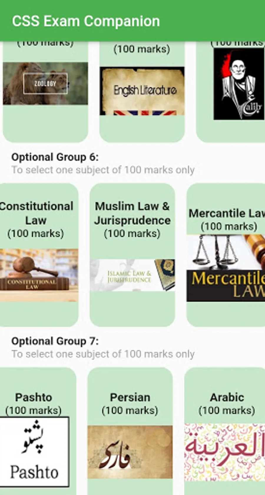 CSS exam or Central Superior Services exam is a highly competitive exam conducted by the Federal Public Service Commission (FPSC) once a year (usually in February) simultaneously all over Pakistan. The exam consists of 1200 marks, 600 for compulsory subjects and 600 for optional subjects. Optional subjects have to be chosen carefully from the designated groups as mentioned on FPSC website (list available in our app as well).