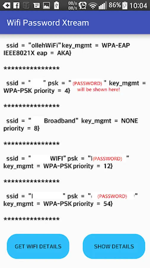 This app can extract passwords from known WiFi networks (wifi networks you have connected your device to in the past) in case you have forgotten them.