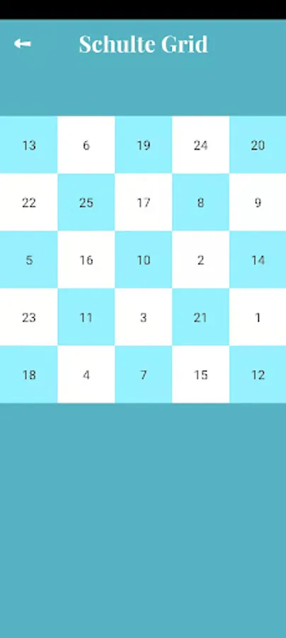 The Schulte Grid was developed by german psychiatrist and psychotherapist Schulte Grid was developed by German psychiatrist and psychotherapist Walter Schulte. It was originally used as a psychological test to study the psychology and the characteristics of a psychological response. 5x5). It may be a change in different dimensions, colored cells, and existing values. Over time, this mode has become a fast reading training technique.