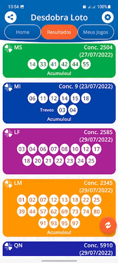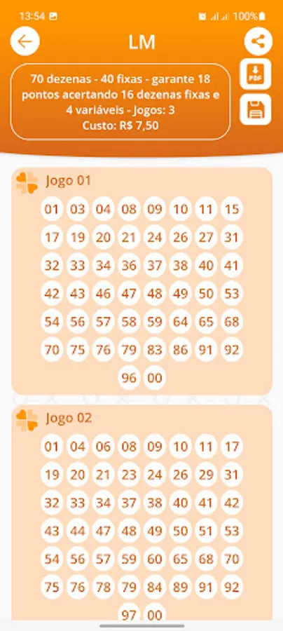 Desdobra Loto, allows you to share or download your unfolds/closes.