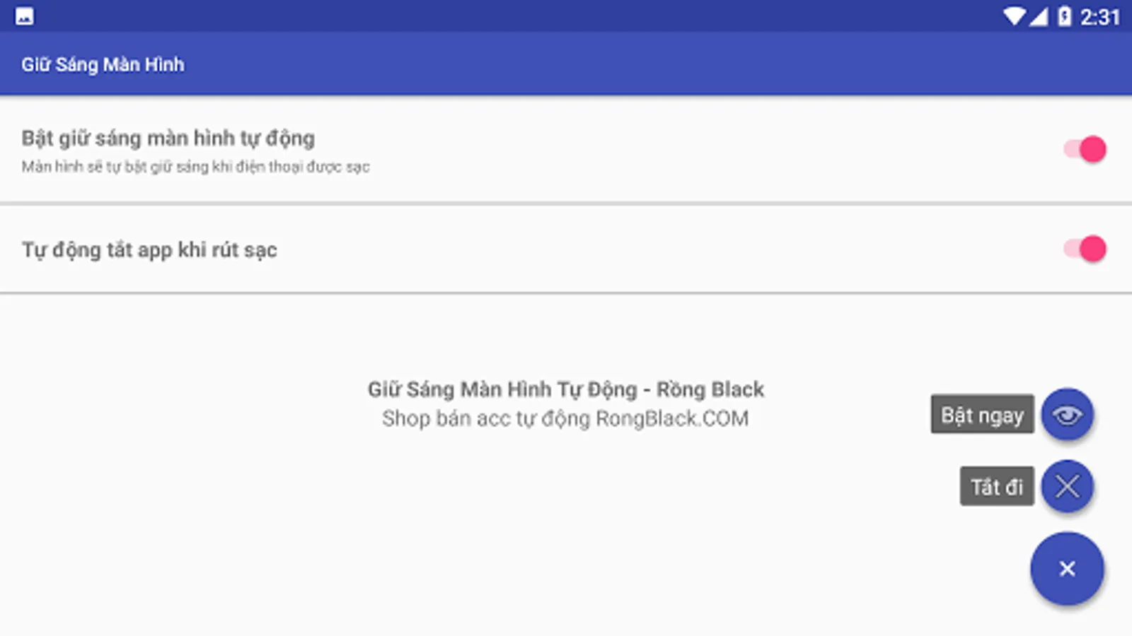 + When charging will be connected to brighten the screen and when charging will automatically turn off the application