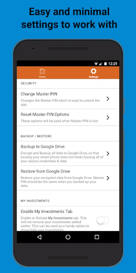 ✔️ Investments information is also secured and encrypted with two-layer encryption.