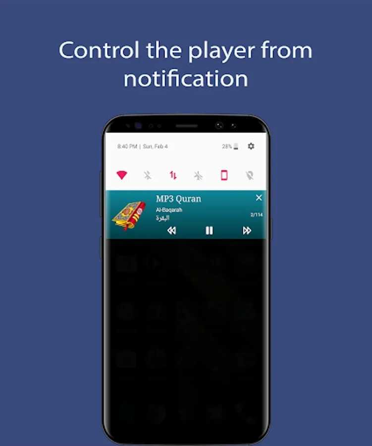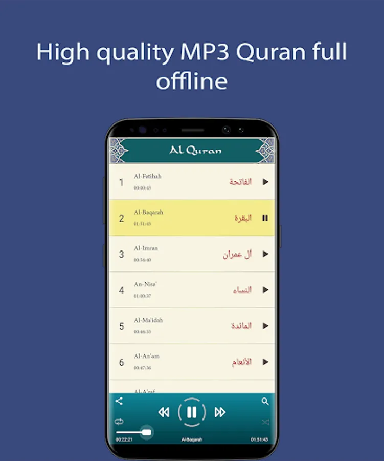 Mp3 file will be play and you can listen Holy Quran for long time.