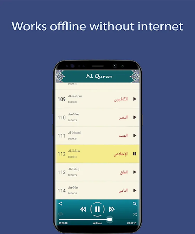 Listen Quran offline without any internet connection. Just open the Quran and tap to any surah of Quran.