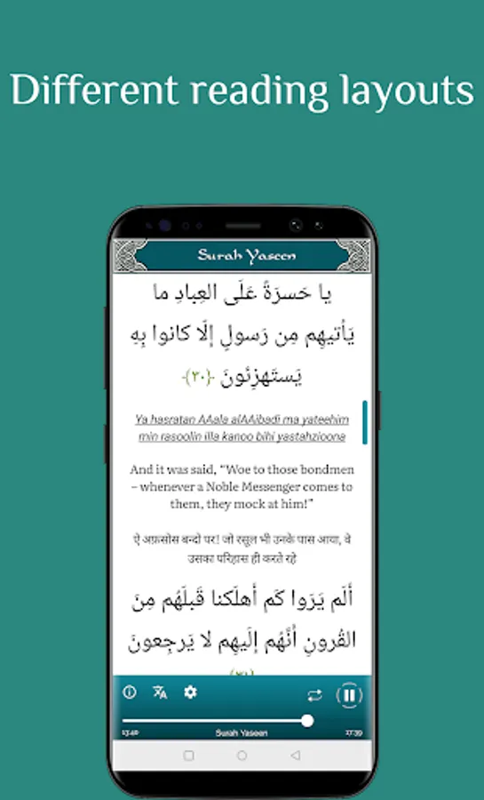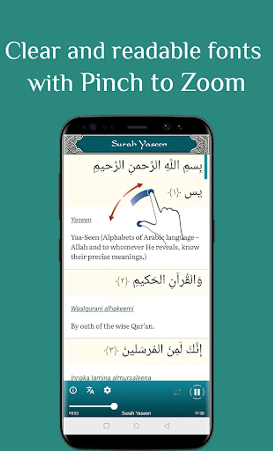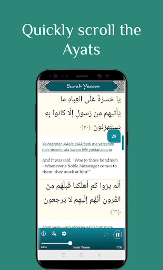 This Surat Ya Sin is a gift for everyone who wants to read Sura e Yaseen like they do on regular paper version of Holy Quran. It is easy on eyes and is with Urdu translation.