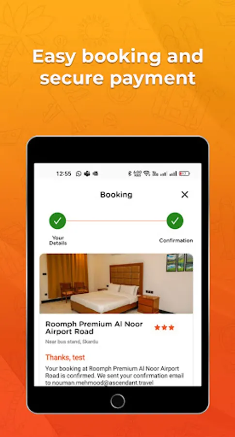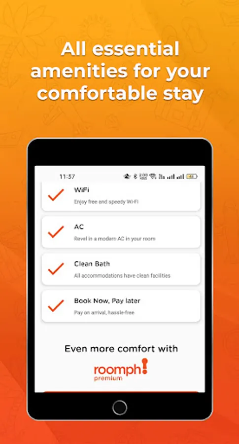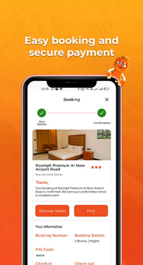Roomph app makes the booking process easy before traveling. Roomph provides users with access to over 1200+ hotels across pk. One few clicks, Find a hotel you like, book or confirm room directly from the app. Our hassle-free booking process is designed to ensure you face no obstacles when making reservations: Open the Roomph app and enter your desired destination, check-in and check-out dates and number of required rooms.