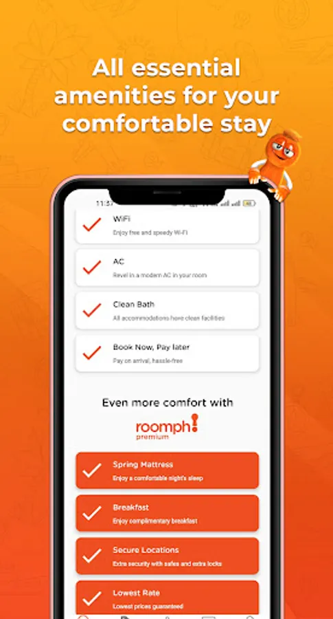 With Roomph Premium, you can enjoy complimentary breakfasts and spring mattresses at the lowest prices. Additionally, all our listed hotels are situated in secure locations with nearby public transport!