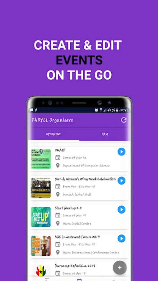 THRYLL Organiser is the go to app for easy event management on your device. Event organisers can now create and edit events, track real-time ticket purchases, scan and verify tickets at check ins.